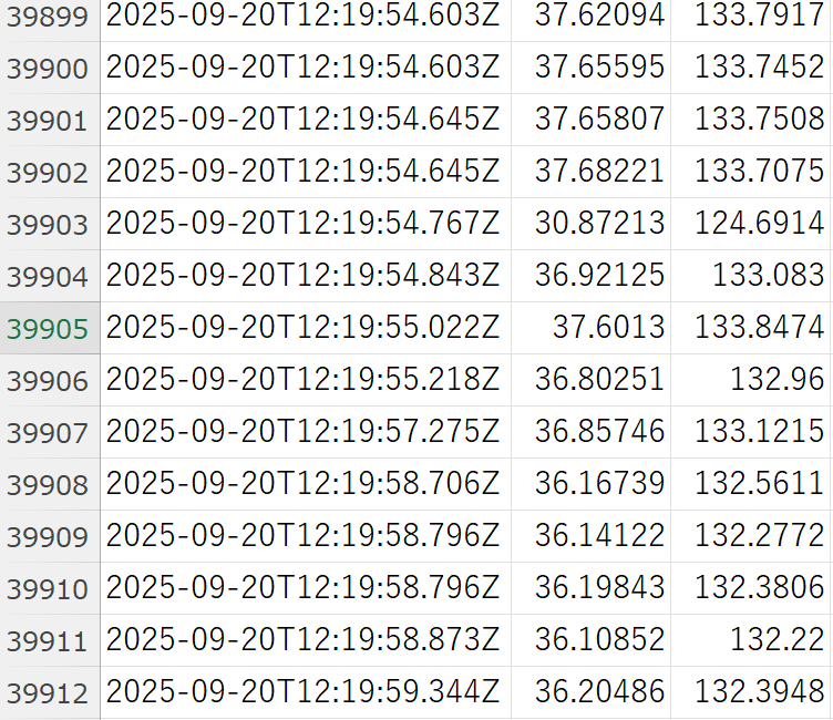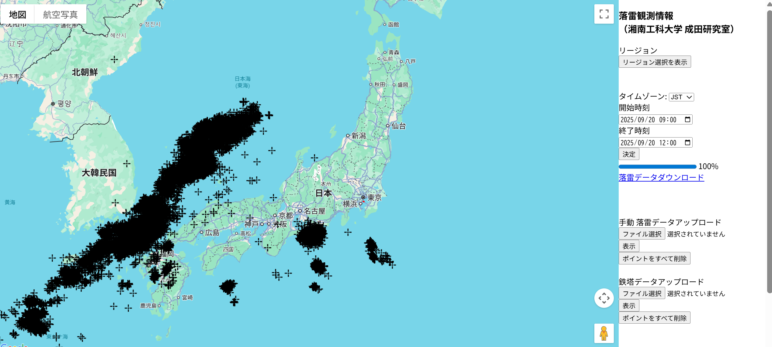 2025年9月20日の落雷プロット