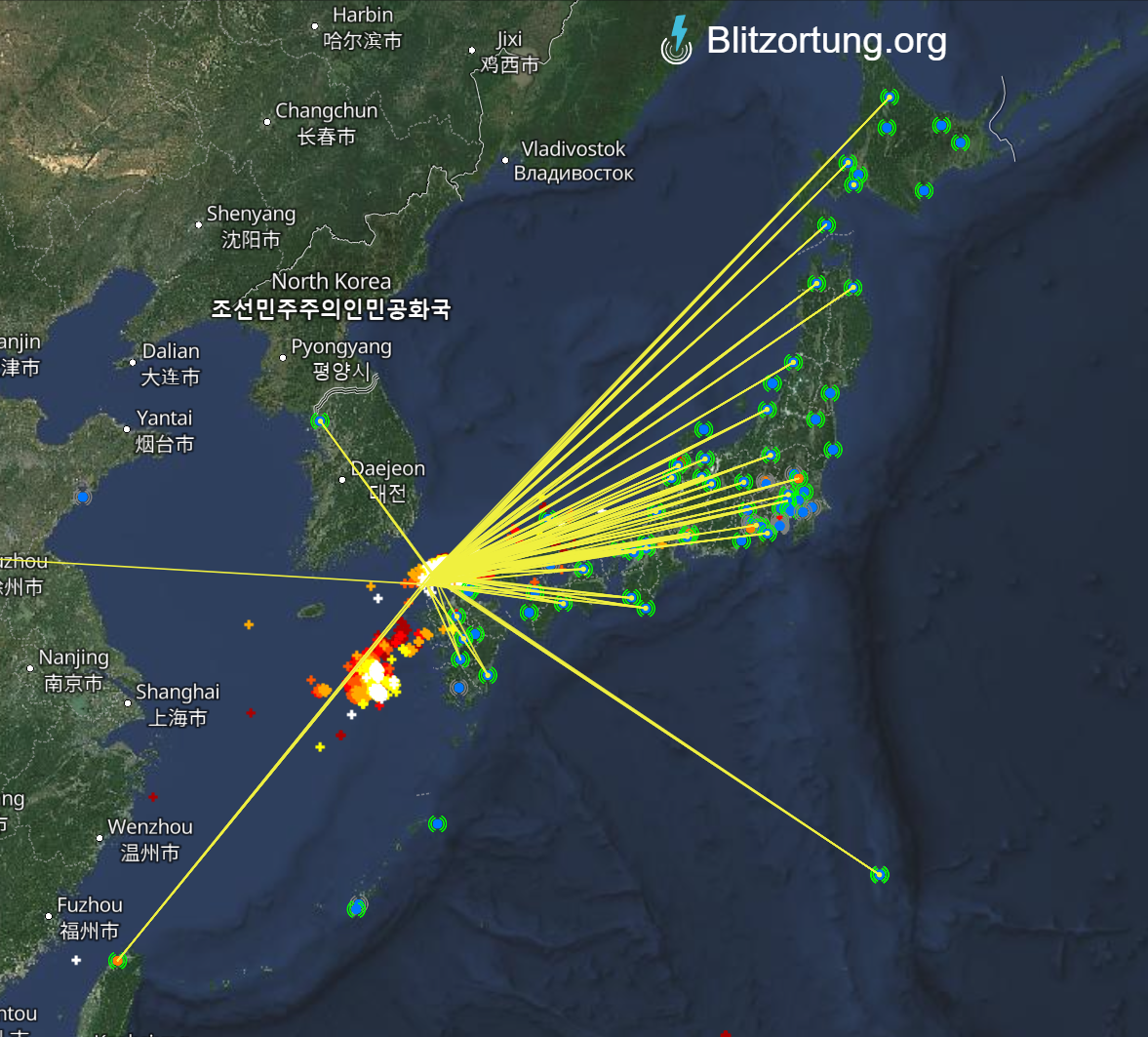2025年9月20日の落雷アニメ(過去12時間)